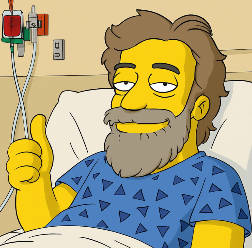Below, I have buttons so you can see what was originally posted. Like I said, the images are gory. If you’re disturbed by this, please don’t click them. They will be gone this coming December. I’m going to let the original Rod-Autobiography site expire when it’s time to renew comes up. I’m going to focus my energy here at Uncle-Rod. As you can see, I’ve taken a liking to cartoon images, especially Simpsons and South Park styles. Have a good time, people! I’m doing okay!